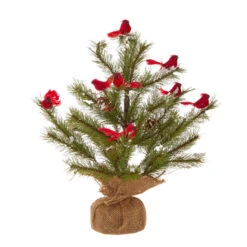 Raz 14.25″ Or 16″ Tree With Cardinals In Burlap Bag Christmas Decoration