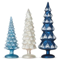 Raz Set Of 3 Blue And White Snowy Glass Christmas Trees 4222914