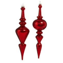 Raz 10″ Large Red Ribbed Finial Glass Christmas Ornament 4300722