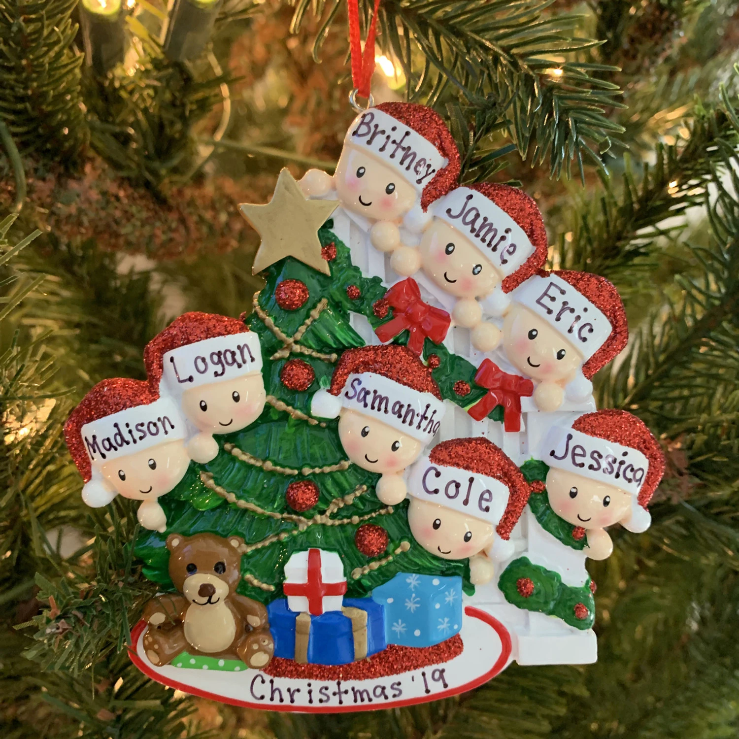 Celebrate Christmas with an ornament you can put the entire family on!! This adorable ornament features a large family all gathered around the Christmas tree with Santa hats on, they’re all probably eyeing their Christmas presents eagerly ready to open them! Item #: OR1789-8 Dimensions: 4.5″ x 4″. Made of resin.