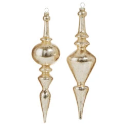 Add something gold to your decor with these gorgeous large finials! Each one is coated in a fine texture! Each sold individually OR as a set of 2. Made by Raz Imports. Made of glass. Dimensions: 12″. Item #: 4324554