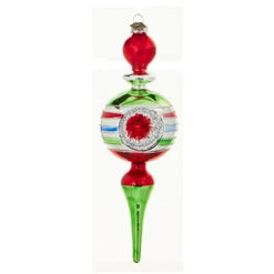Everyone loves vintage! Add this pick to your Christmas tree it features snow covered branches and silver, red, and green metallic and glitter ball ornaments. Pop them throughout your tree and throughout a garland for a fun look! Made by Raz Imports. Made of plastic and polyester. Dimensions: 18″. Item #: F4202514