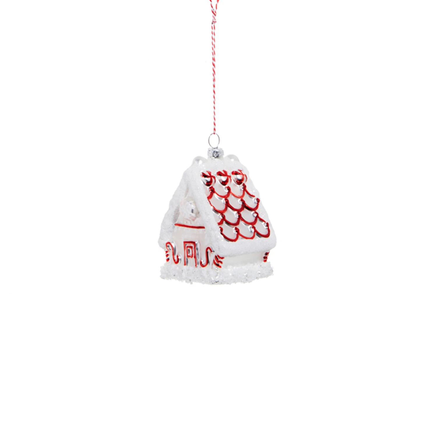 Sweeten up your decor with these adorable houses! Each one is a stunning white glass house with metallic red detailing and white glitter hung by a white and red string! Each sold individually OR as a set of 2. Made by Raz Imports. Made of glass. Dimensions: 3.25″L X 2.75″W X 3.5″H. Item #: 4324507