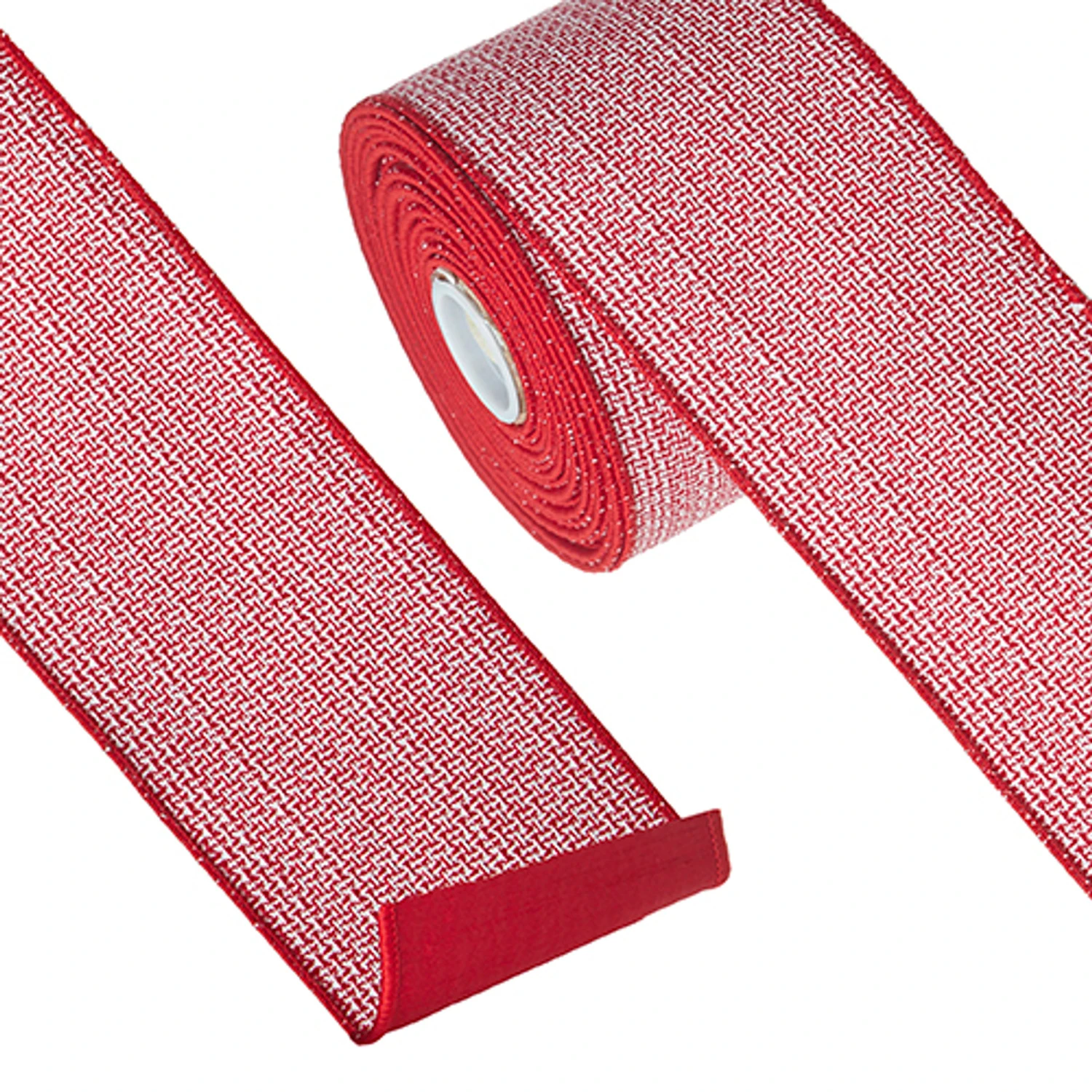 This simple ribbon features a red and white tweed fabric with a bright red backing! Perfect to tie some bows for wreaths, or weave into your tree! Made by Raz Imports. Made of cotton. Dimensions: 4″ x 10 yards. Item #: R4227742