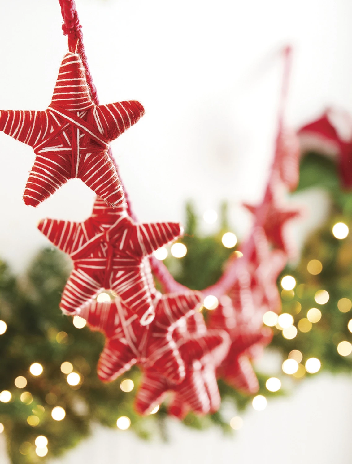 Each of these stars are wrapped with red and white yarn for a super cozy feel! Hang this garland in a greenery garland or in your Christmas tree! Made by Raz Imports. Made of yarn. Dimensions: 6′. Item #: G4160800