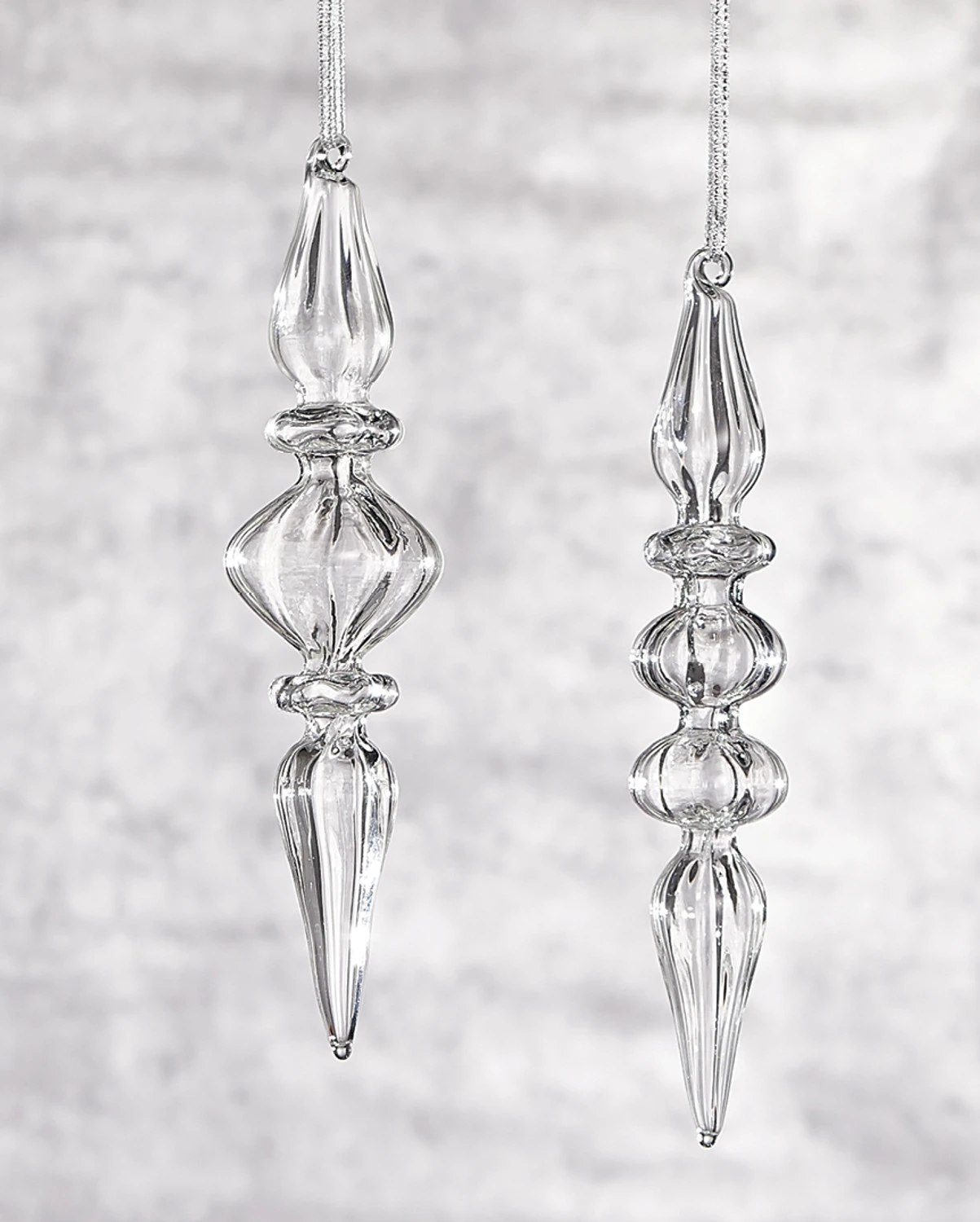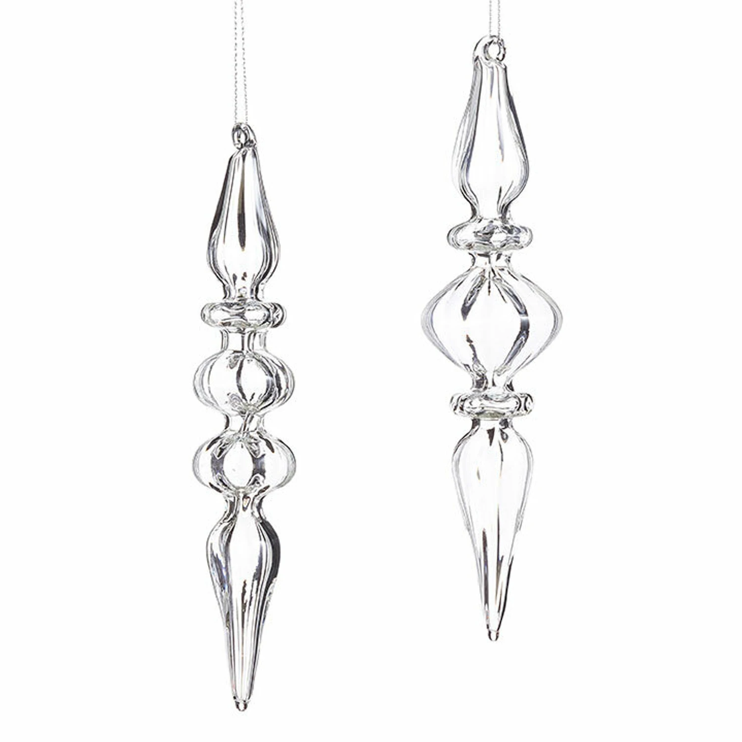 These stunning clear glass finials are sure to look perfect on your Christmas tree glinting and reflecting the light from your lights. These are also great for those of you who love the sparkle, but dislike the pesky glitter that comes with it. Each sold individually. Made by Raz Imports. Made of glass. Dimensions: 8″ tall. Item #: 4022819
