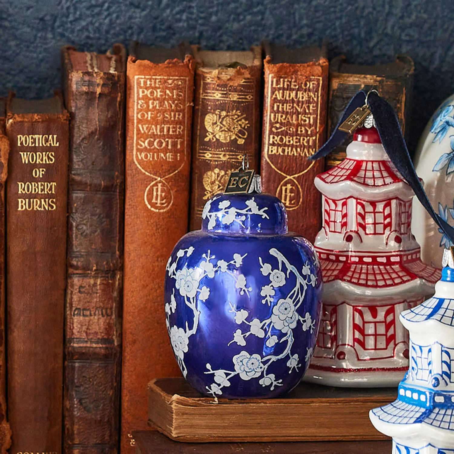 Add a touch of elegance and class with this ornament! It features a blue glass vase shape with white cherry blossom branches and lowers! Made by Raz Imports. Made of glass. Dimensions: 5″ D X 6.5″ H. Item #: 4353180