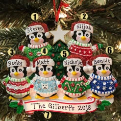 Ugly Sweater Penguin Family Of 6 Personalized Christmas Ornament