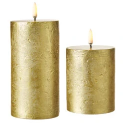 Uyuni 3″ X 5″ Or 7″ Gold Texture Flat Top Flicker Flame Pillar Candle